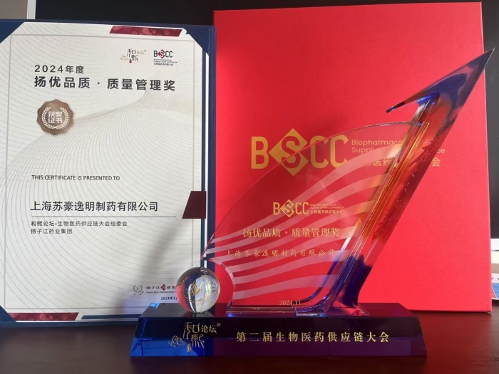 上海蘇豪(hao)逸明制藥有限(xian)公(gong)司第三次(ci)榮獲(huo)揚(yang)子(zi)江藥業集團(tuan)主辦(ban)的(de)第二屆生物醫藥供(gong)應鏈大(da)會優(you)秀(xiu)供(gong)應商(集團(tuan)最高(gao)(gao)獎(jiang)項:質量管理獎(jiang)),公(gong)司高(gao)(gao)級副總經理周天(tian)云(yun)出(chu)席大(da)會。